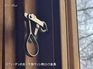 今のスウェーデンのサッシには使われていないタイプのようですが、30~40年近く前に建てられたおうちには、この金具が多く使われていました。(尚、この金具が付いたサッシは現在製造をされていないようですが、金具自体は今でも入手可能です)