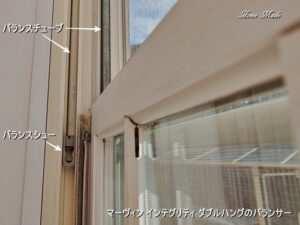 それは、下窓建具はサッシの下側に来る為、バランスチューブが短いと下窓を一杯まで下げた時にバランスチューブの端が見えてしまい、見た目の納まりがよくありません。その為、バランサーを少し長くして、下窓建具がバランスチューブに少し被るようにしているのです。