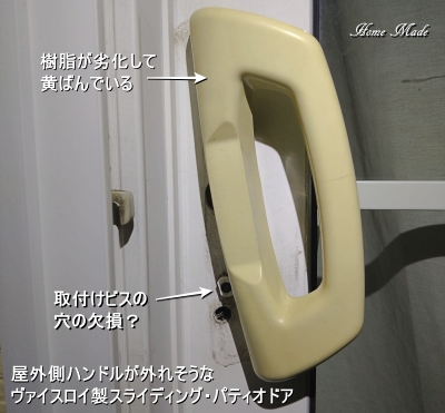 屋外側ハンドルが外れそうなヴァイスロイ製スライディング・パティオドア