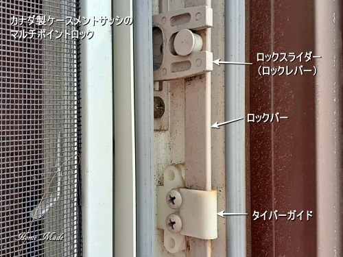 これらの部品が組み合わさって、複数で鍵が掛かるマルチポイントロックというシステムが構築されています。
