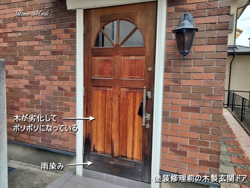 塗装修理前の木製玄関ドア