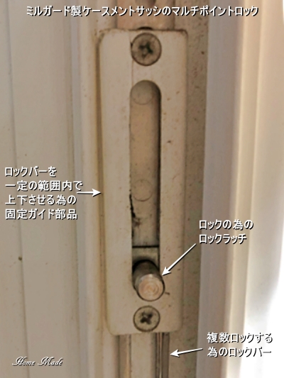 ミルガード製ケースメントサッシのマルチポイントロック