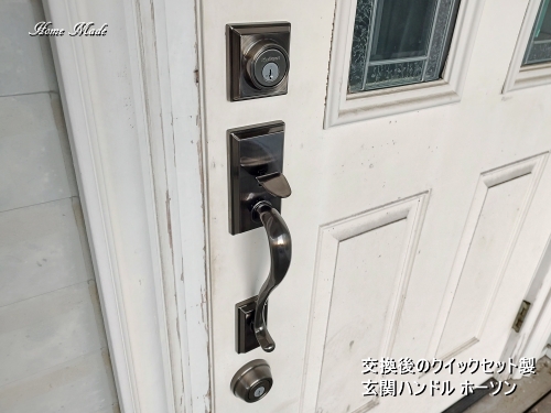 交換後のクイックセット製玄関ハンドル ホーソン