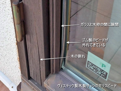 Vest Techのサッシの屋外側ですが、いろいろメンテナンスが必要となっている感じです。