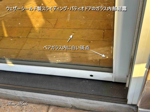Weather Shieldの掃出しサッシですが、ペアガラス内に内部結露が原因の斑点が付着しているようです。もしかしたら、比較的簡単にペアガラスの交換が可能かも知れません。