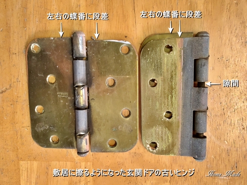 毎日のドアの開閉で、これだけ金属が減ってしまいます。新築から15年くらいしたら、ドアヒンジの交換やドアの調整をするようにして下さい。