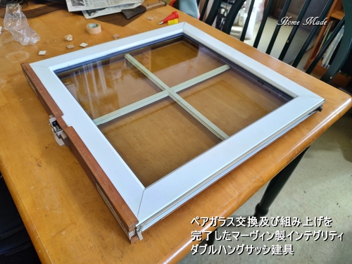 ペアガラス交換及び組み上げを完了したマーヴィン製インテグリティ ダブルハングサッシ建具