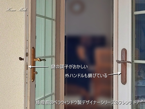 修理前のペラウィンドウ製デザイナーシリーズのフレンチドア