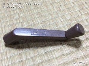 ローウェンの英語表記があるので専用品かと思われるでしょうが、この手のハンドルは汎用品としても存在します。ただ、ローウェンも自社製品に付属させるに当たって、何某かのロゴを入れておきたかったのでしょう。