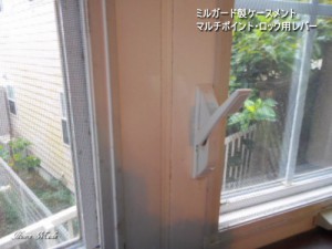 輸入のケースメントサッシに付いている通常のロック金物は、サッシの下の方の1ヶ所で鍵を掛ける場合が多く見受けられます。