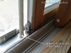 でも、日本のサッシではこうした気密材が使われていることが少ない為、交換するという習慣が日本人にはありません。ですから、古い輸入住宅ではこうした不具合がそのまま放置されて窓からぶら下がっているといった光景も見受けられます。