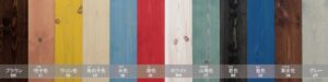 素材は、柔らかくて足触りが優しいパイン材で出来ていて、そこに木肌が分かる半透明な塗料を塗って仕上げています。そのカラーバリエーションは、12色。