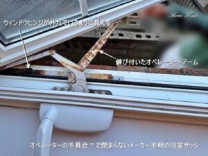 写真は、不具合があるというサッシのオペレーターですが、アームなどに随分と錆びが付いています。