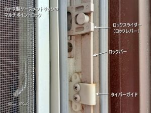 こちらのサッシには、マルチポイントロックと言う鍵金物が付いていて、1つのロックレバーで複数箇所のロックが掛かるようになっています。