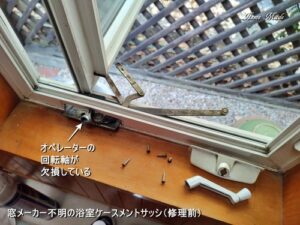 今回は、開閉金物のオペレーターの回転軸が折れて、ハンドルごと抜けてきてしまったという不具合でした。