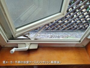 サッシ・メーカー不明の樹脂窓ですが、浴室の湿気や水分に付着した汚れなどが、オペレーターの金物をベッタリと覆っている状況でした。
