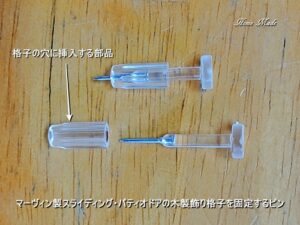 岐阜県のお客様の輸入住宅で輸入の掃出しサッシ(スライディング・パティオドア)に取り付けられた飾り格子を固定する為のピンを調達しました。