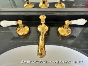 水栓金具は、品番がAO-1122のヤスダプロモーション製の豪華なワイドスプレッド・タイプ。