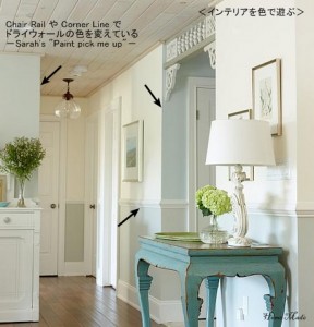 でも、北米のリノベーションTV番組でも有名なインテリアデザイナーの「Sarah Richardson」は、同じ空間であっても壁の色を塗り分けるテクニックを紹介しています。