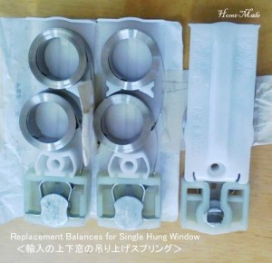 ダブル・ハングと呼ばれる上げ下げ窓の窓枠の中には、開閉を楽にする為の吊り上げバネ(Balancer)が仕込まれている。この部品は、メーカーや年代、窓形式や大きさによって種類やデザインが異なるのだが、どの輸入サッシ・メーカーの上げ下げ窓にも入っています。
